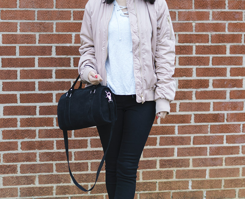 I was shopping for a winter coat when this bomber jacket caught my eye. The color is so perfect for spring and it brightens up any dark outfit. It also keeps me super warm because the fabric is so thick and cozy. All of this make it the best jacket to help me transition from winter to spring! I thought I have so many ideas on how to wear it... So stay tuned for more ways to style bomber jackets! :)