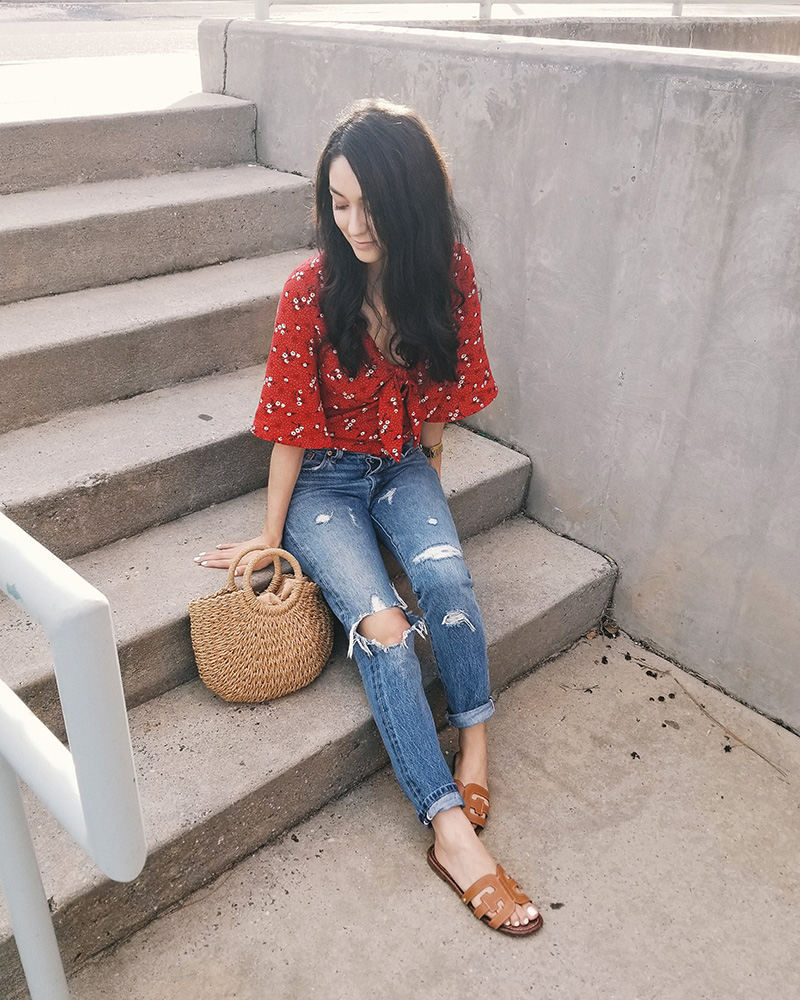 RUE21 top | LEVI'S 501 jeans | SAM EDELMAN sandals (similar here)| LULUS straw bag (similar here + here)
